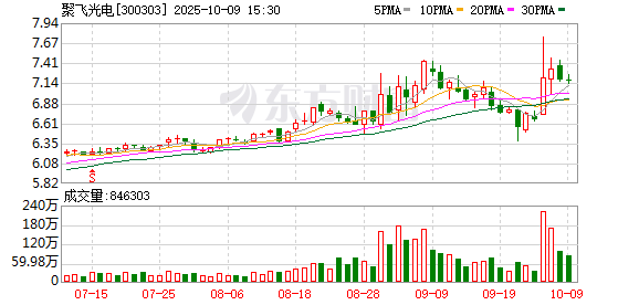 10月9日,聚飞光电(300303)发布公告,截至2025年9月30日已回购367万股,占总股本的0.2593%,回购成交价格区间为5.82元/股至7.11元/股,成交总金额为2293万元。